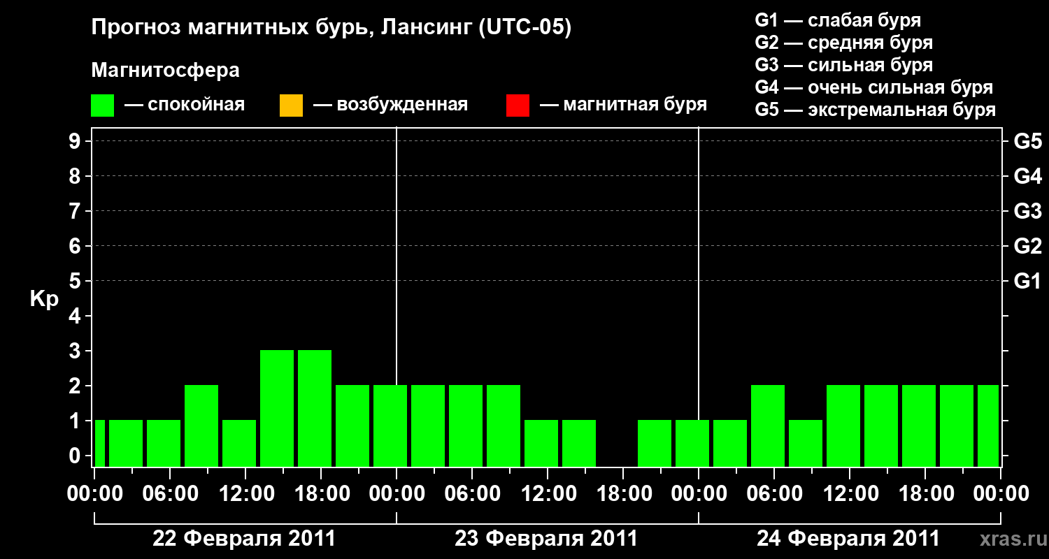 Прогноз магнитных бурь в Лансинге на 22 февраля 2011 года
