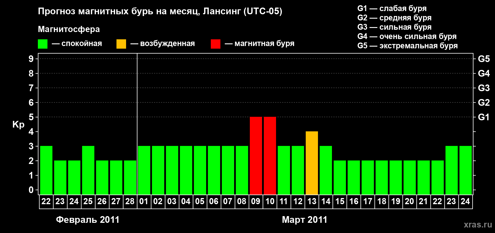 Прогноз магнитных бурь в Лансинге — 22 февраля 2011 года