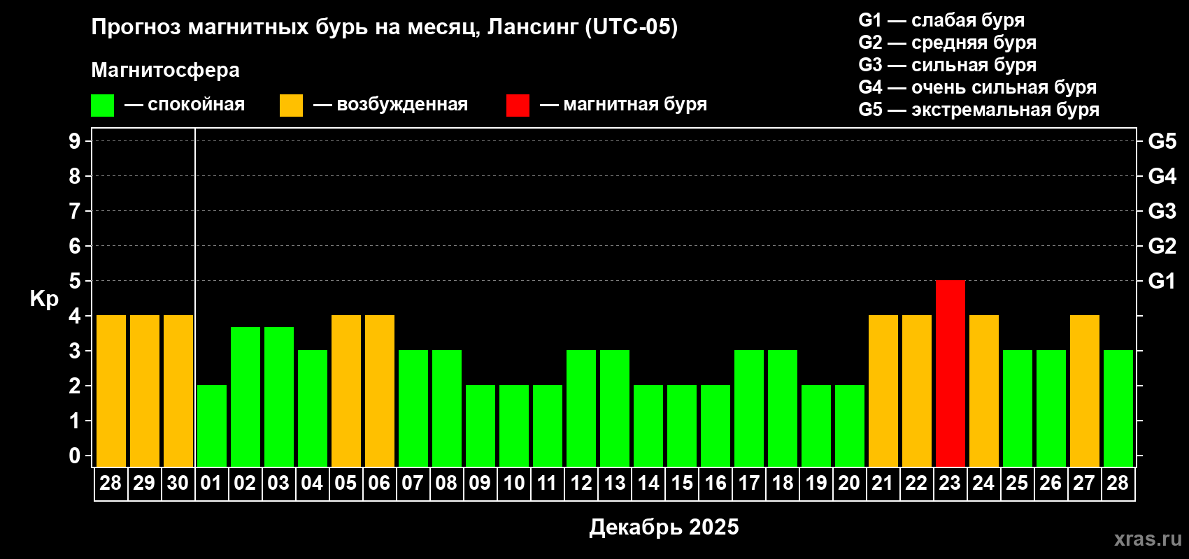 Прогноз магнитных бурь в Лансинге — 28 ноября 2025 года
