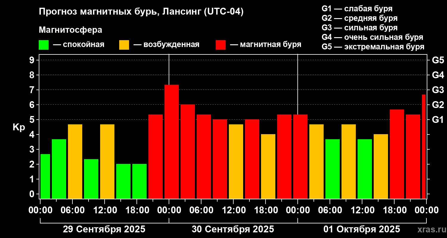 Прогноз магнитных бурь в Лансинге на 29 сентября 2025 года