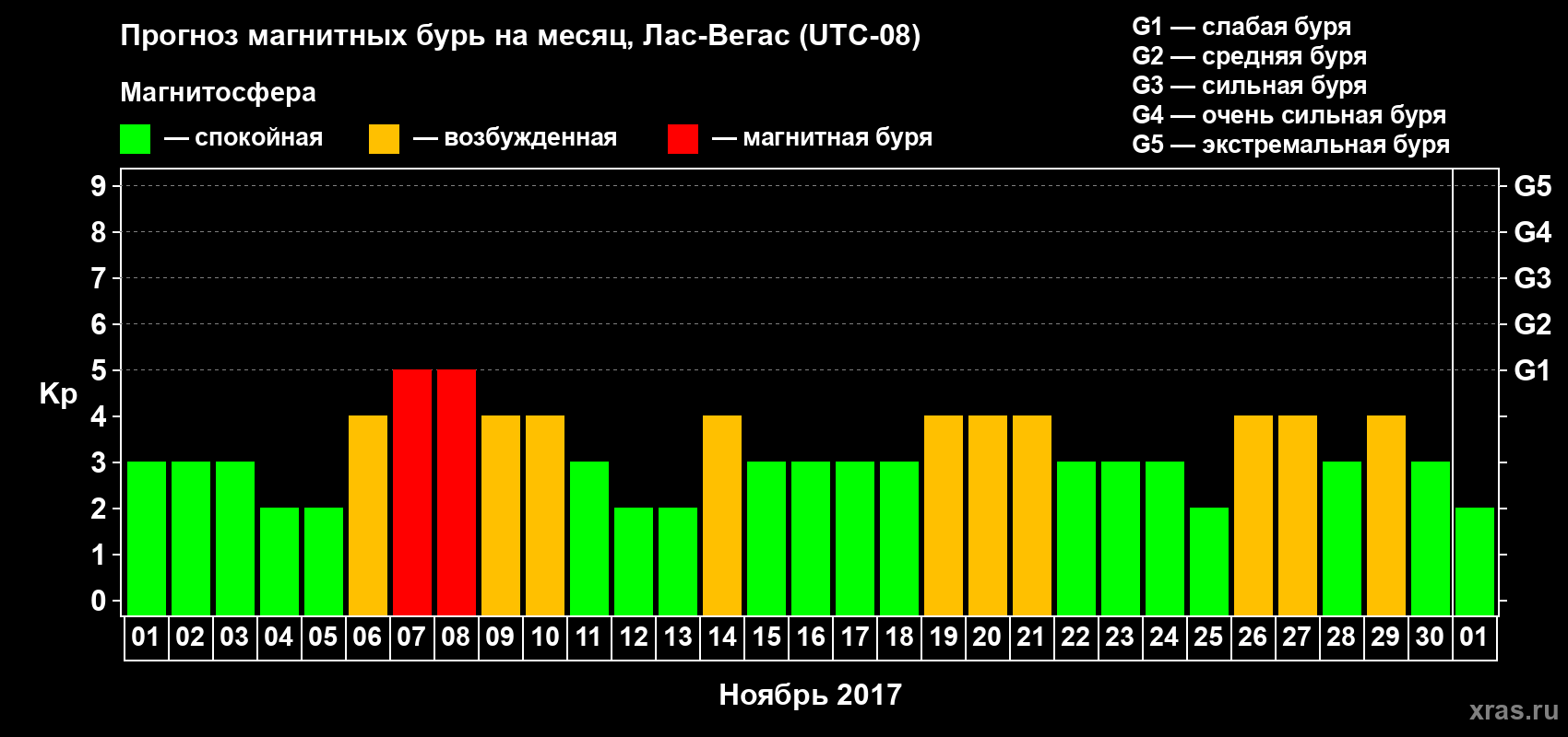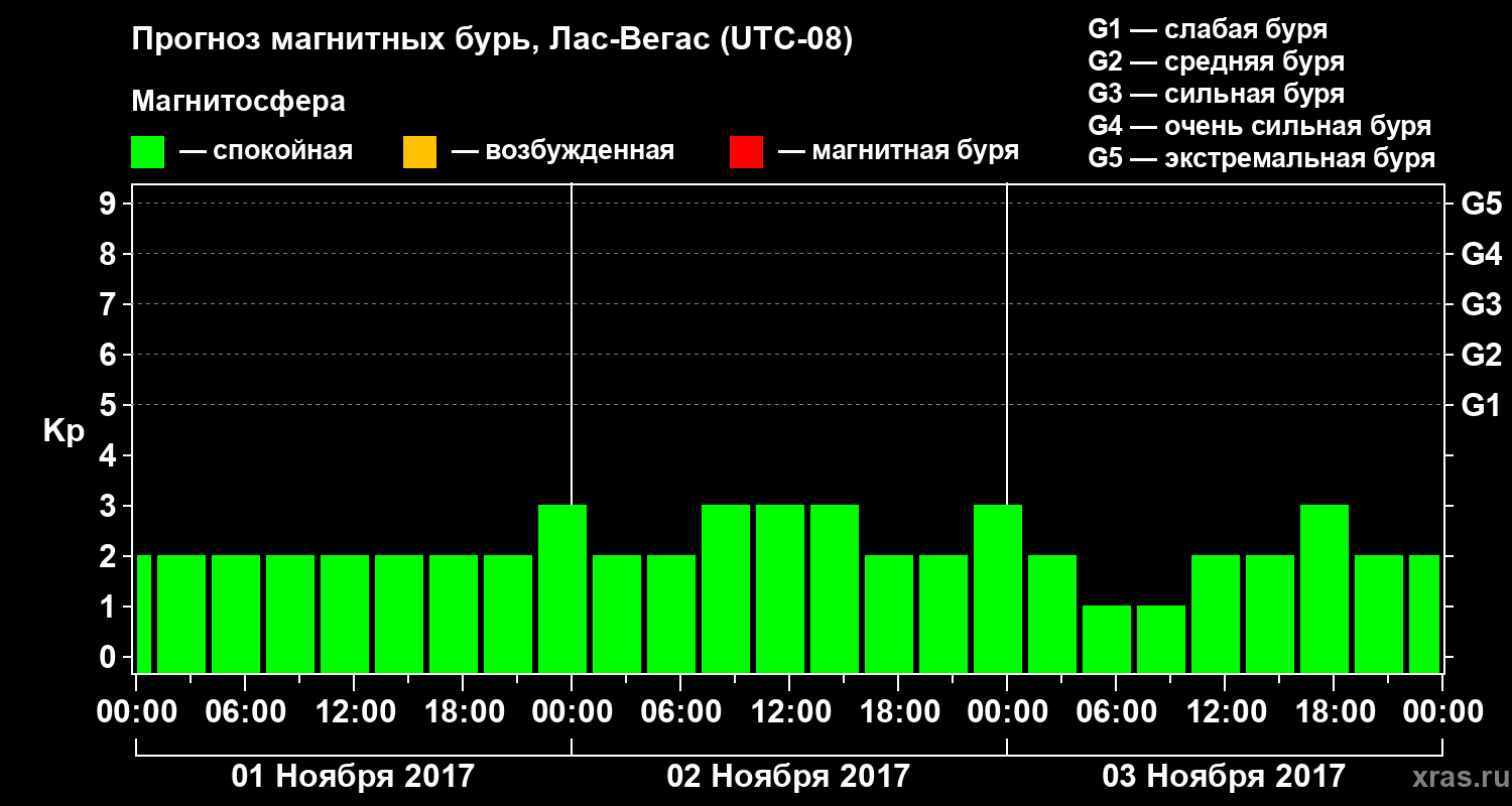 Прогноз магнитных бурь в Лас-Вегасе — 1 ноября 2017 года