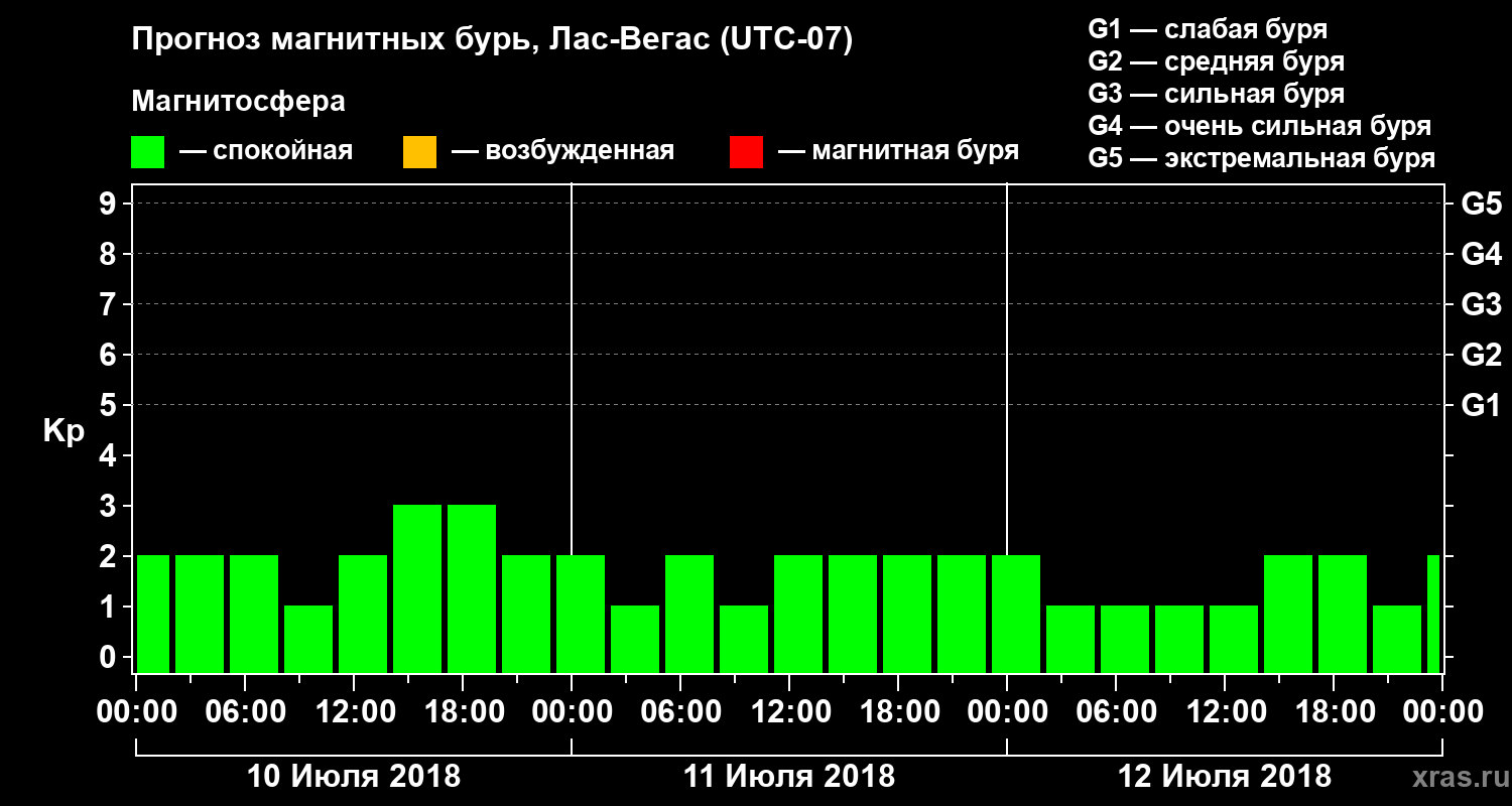 Прогноз магнитных бурь в Лас-Вегасе — 10 июля 2018 года