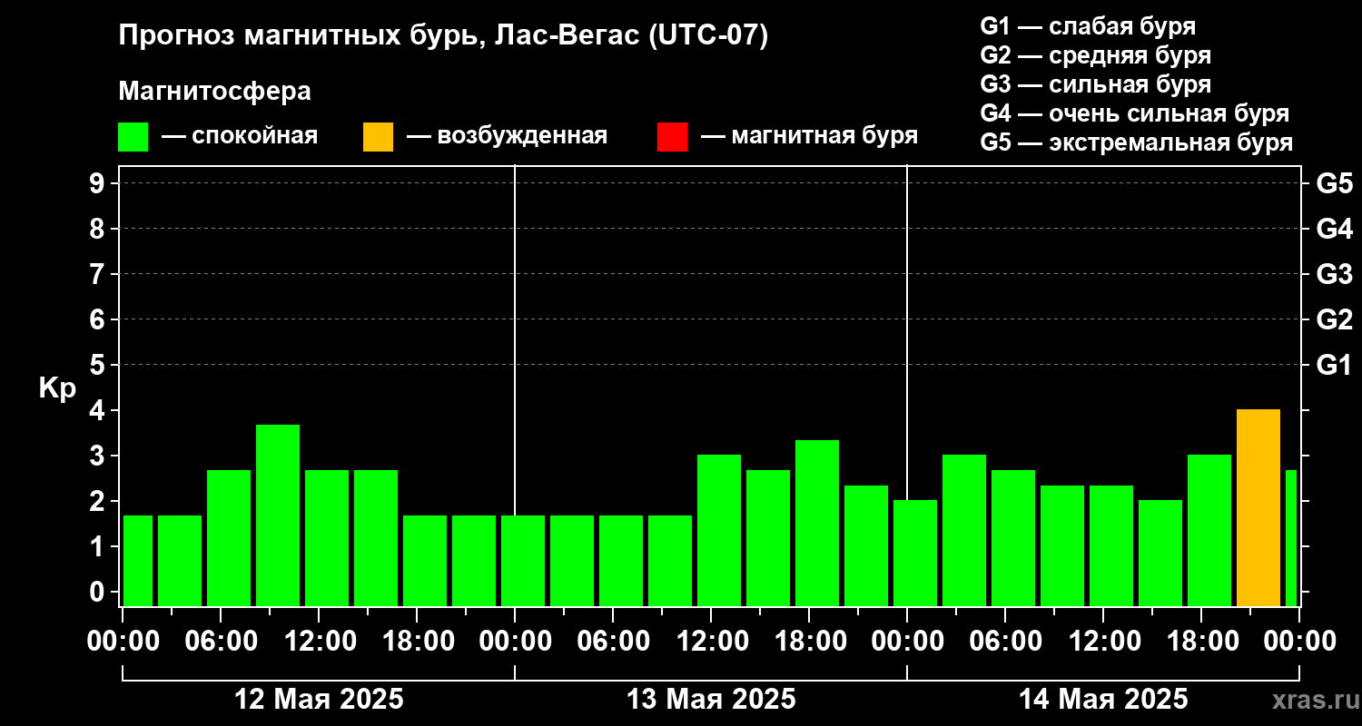 Прогноз магнитных бурь в Лас-Вегасе на 12 мая 2025 года