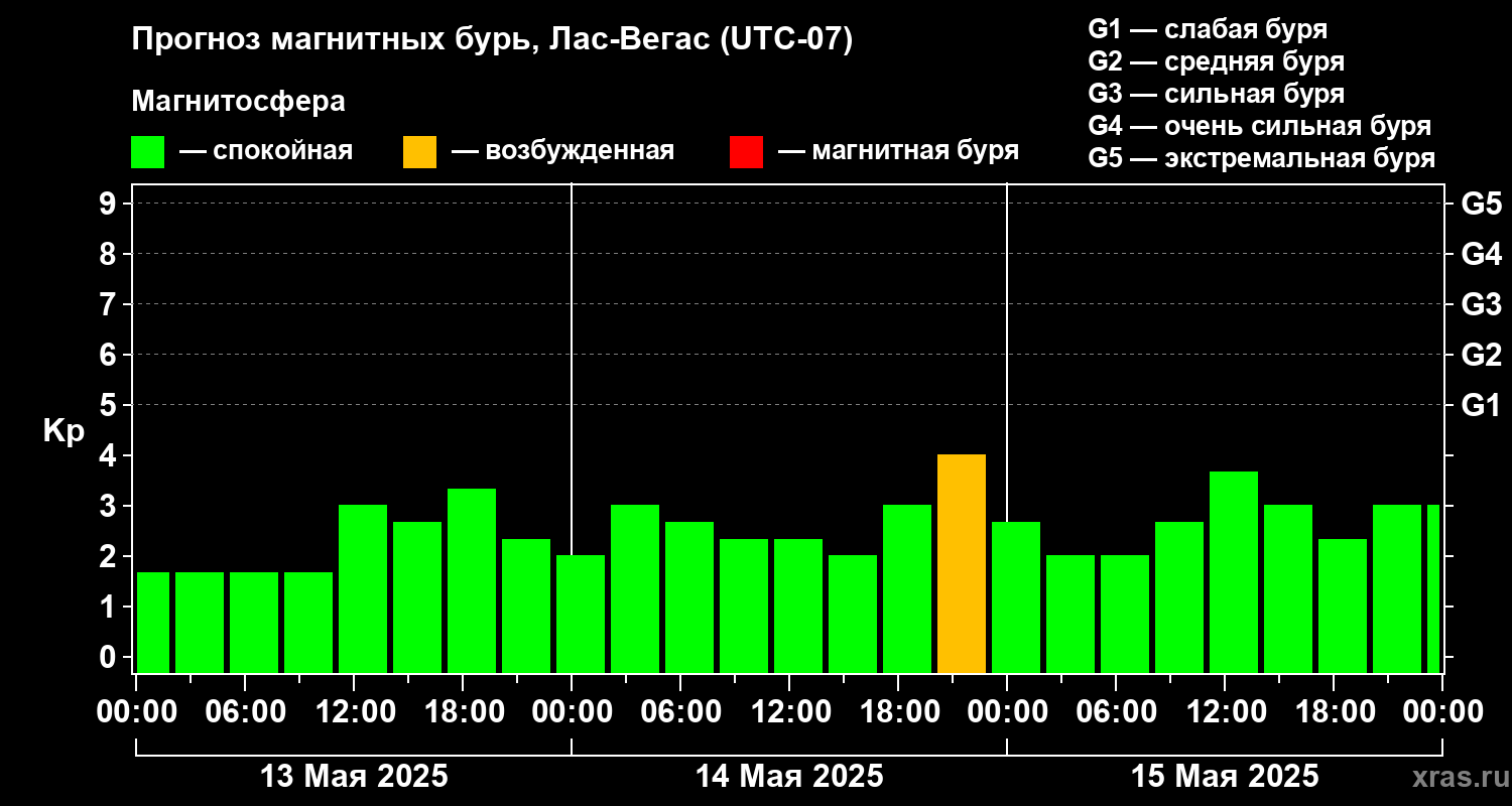 Прогноз магнитных бурь в Лас-Вегасе на 13 мая 2025 года