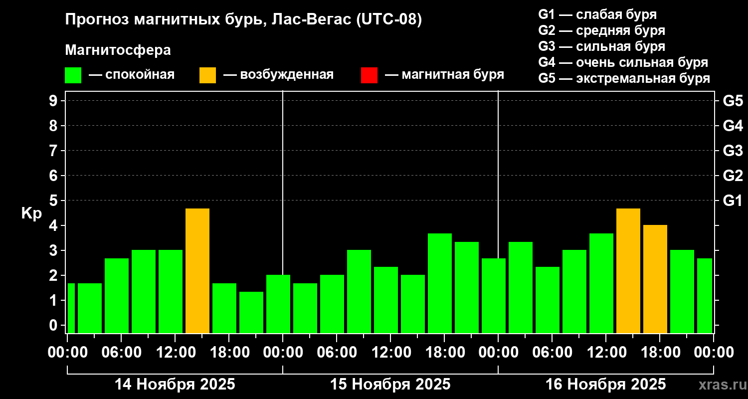 Прогноз магнитных бурь в Лас-Вегасе — 14 ноября 2025 года