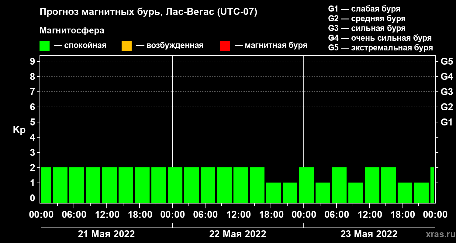 Прогноз магнитных бурь в Лас-Вегасе на 21 мая 2022 года