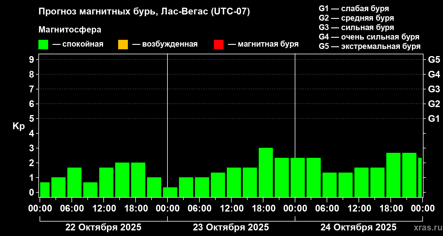 Прогноз магнитных бурь в Лас-Вегасе — 22 октября 2025 года
