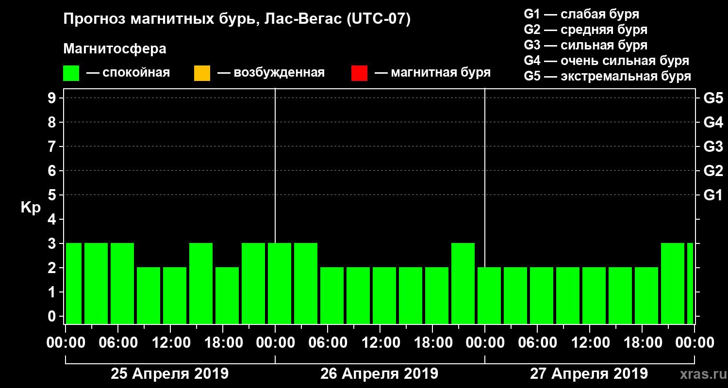 Прогноз магнитных бурь в Лас-Вегасе на 25 апреля 2019 года