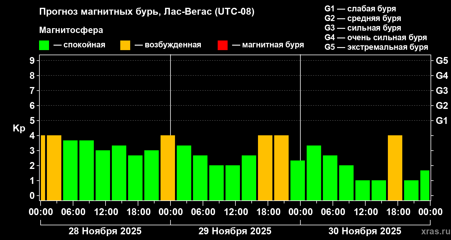 Прогноз магнитных бурь в Лас-Вегасе — 28 ноября 2025 года