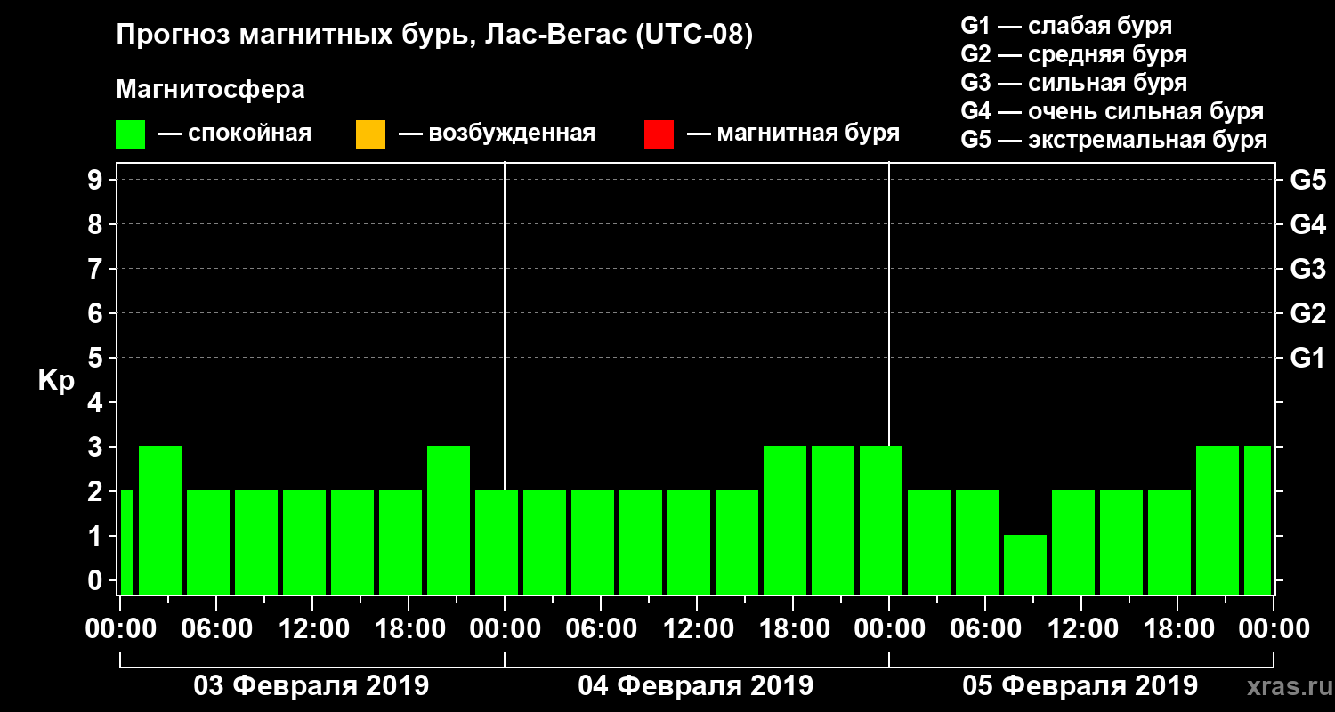 Прогноз магнитных бурь в Лас-Вегасе на 3 февраля 2019 года