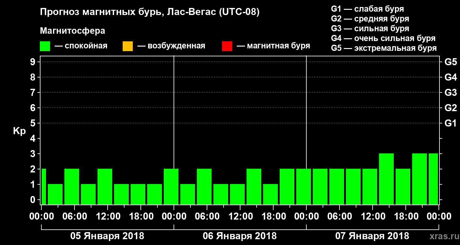 Прогноз магнитных бурь в Лас-Вегасе на 5 января 2018 года