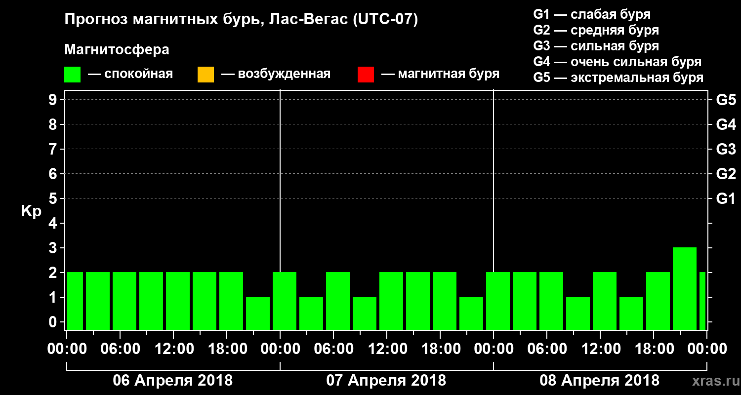 Прогноз магнитных бурь в Лас-Вегасе — 6 апреля 2018 года