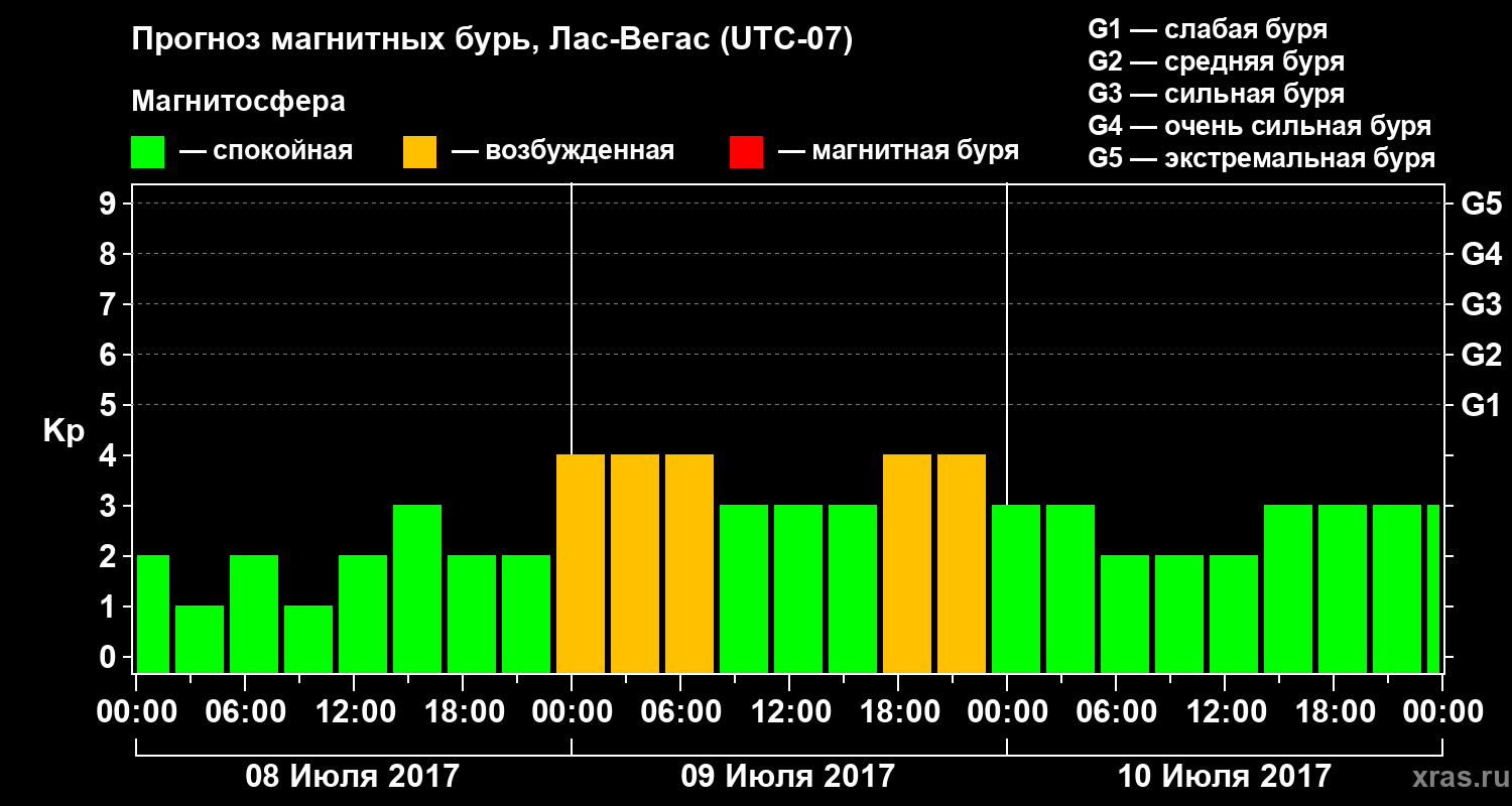 Прогноз магнитных бурь в Лас-Вегасе на 8 июля 2017 года