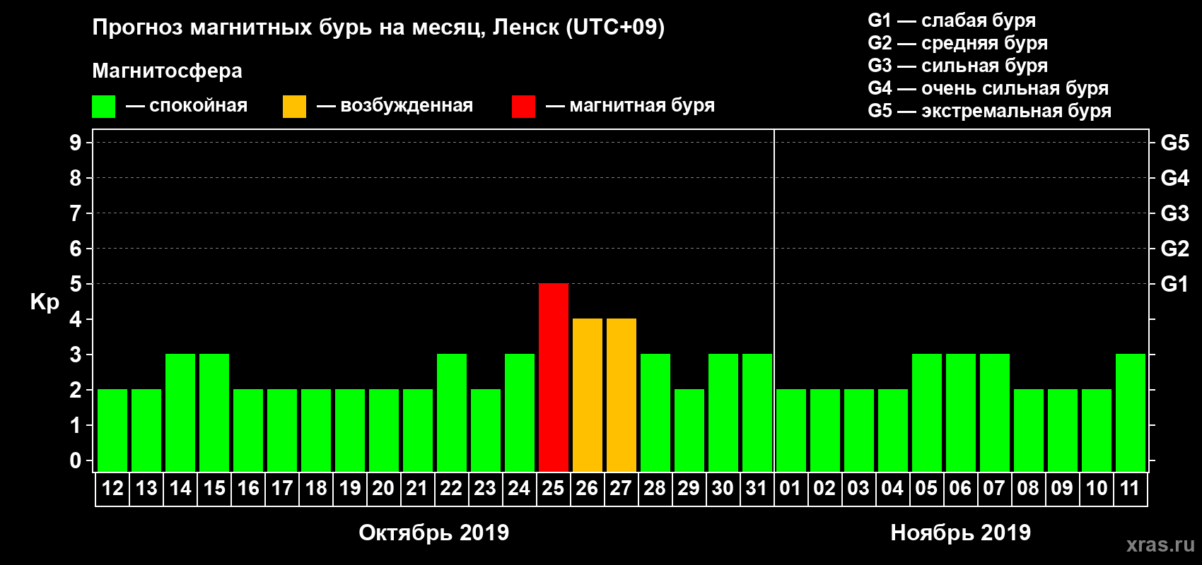 Прогноз магнитных бурь в Ленске — 12 октября 2019 года