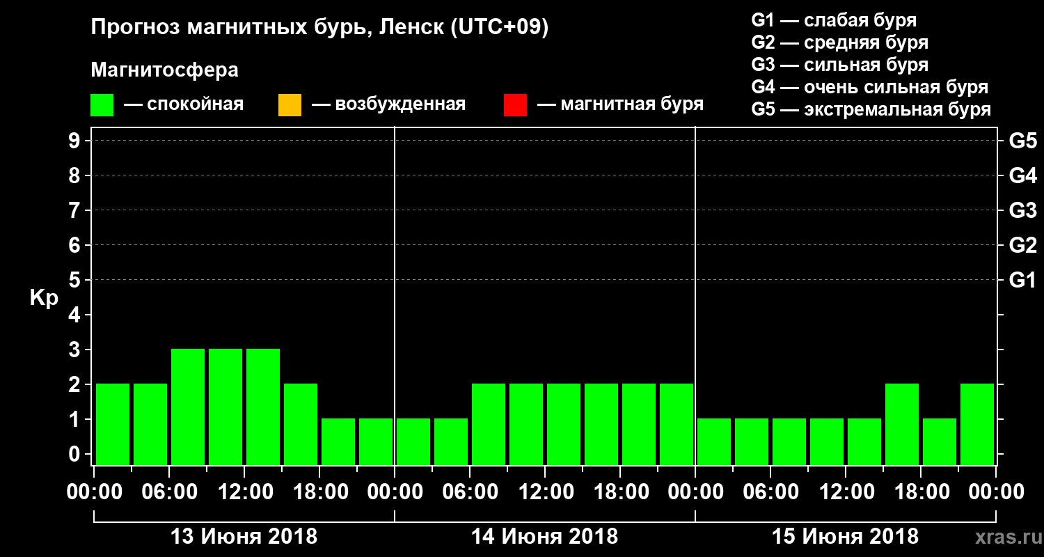 Прогноз магнитных бурь в Ленске — 13 июня 2018 года