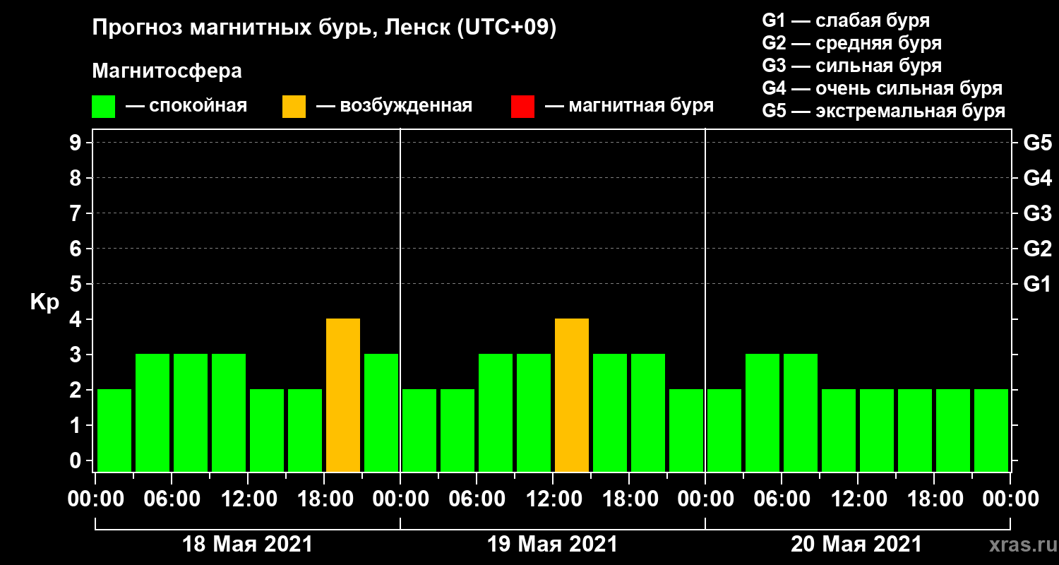 Прогноз магнитных бурь в Ленске — 18 мая 2021 года