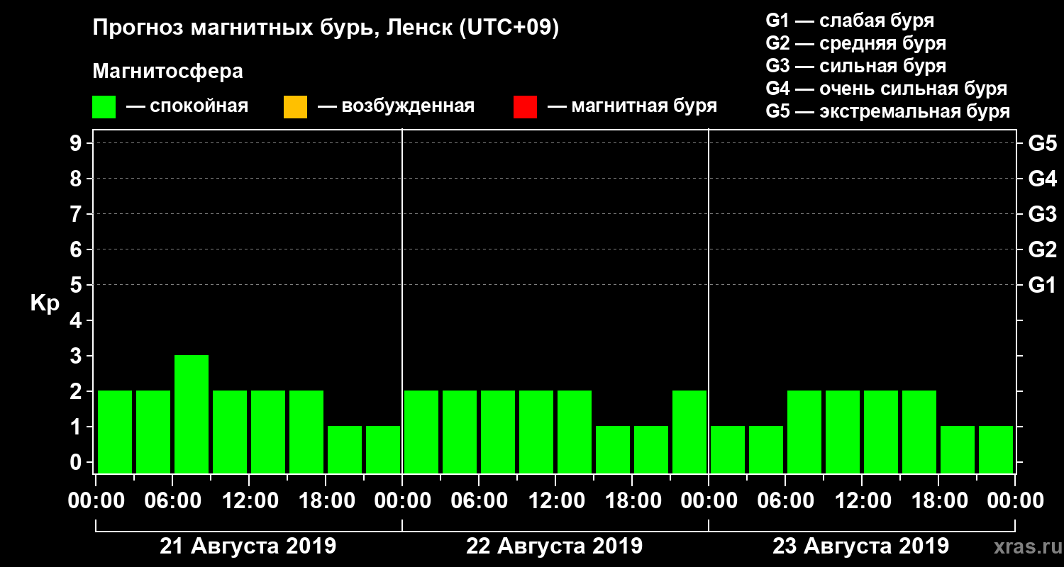 Прогноз магнитных бурь в Ленске — 21 августа 2019 года