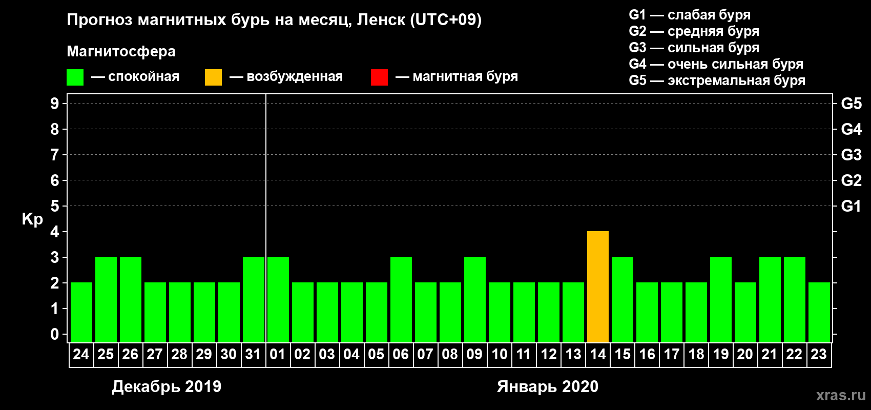 Прогноз магнитных бурь в Ленске — 24 декабря 2019 года