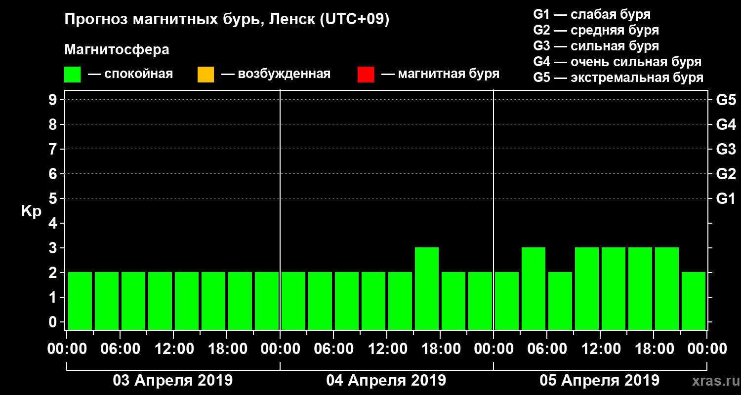 Прогноз магнитных бурь в Ленске — 3 апреля 2019 года