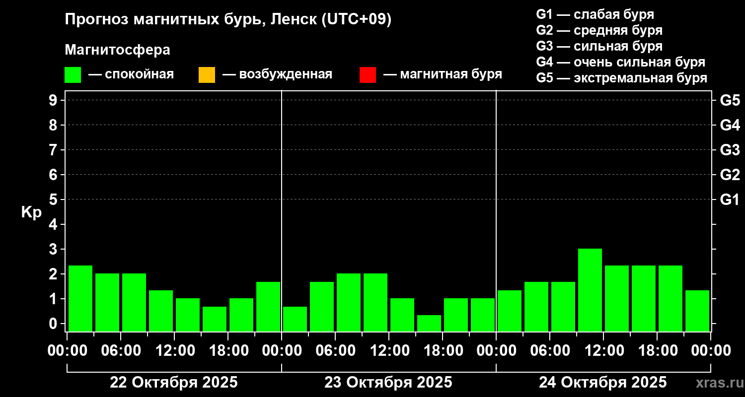 Прогноз магнитных бурь в Ленске — 22 октября 2025 года