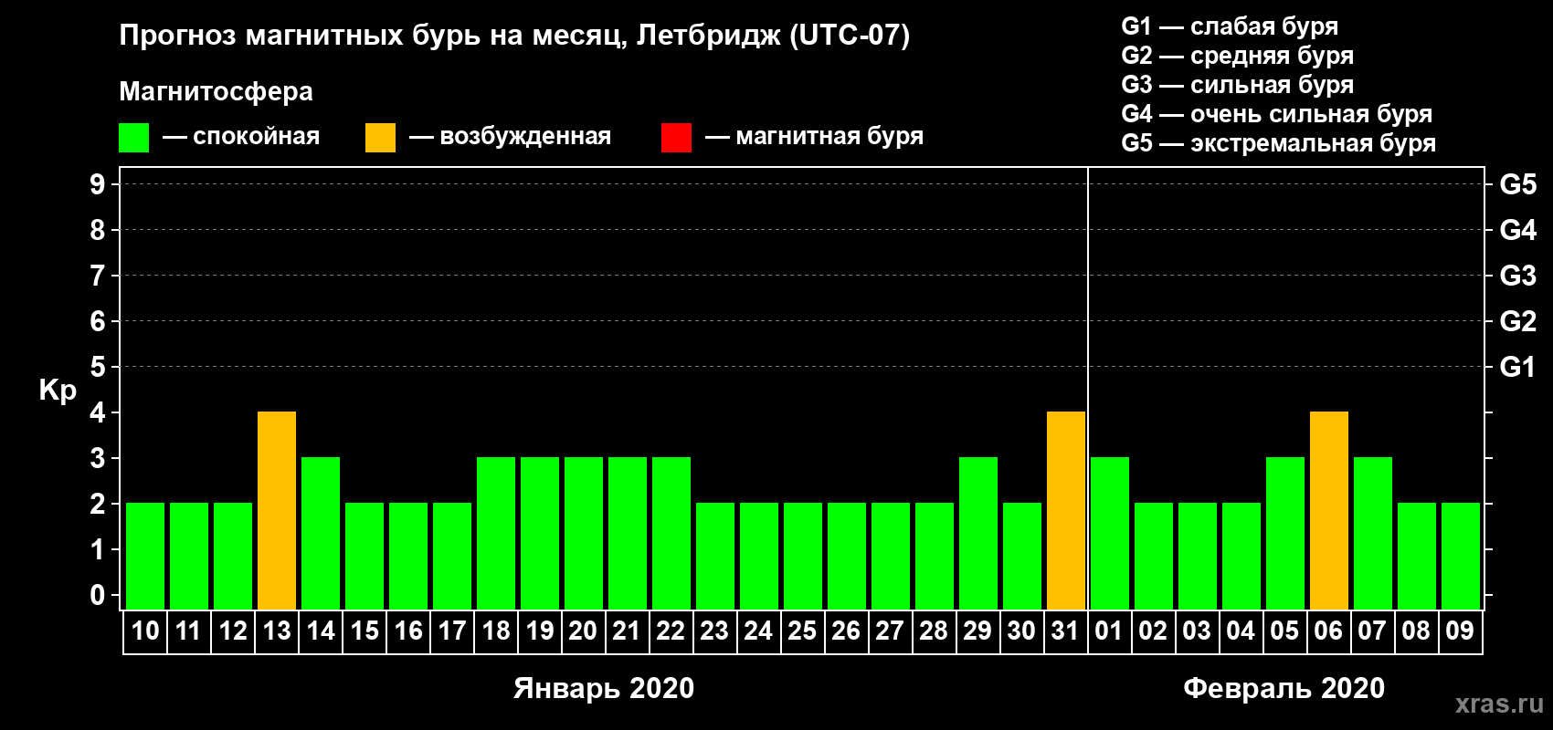 Прогноз магнитных бурь в Летбридже на 10 января 2020 года