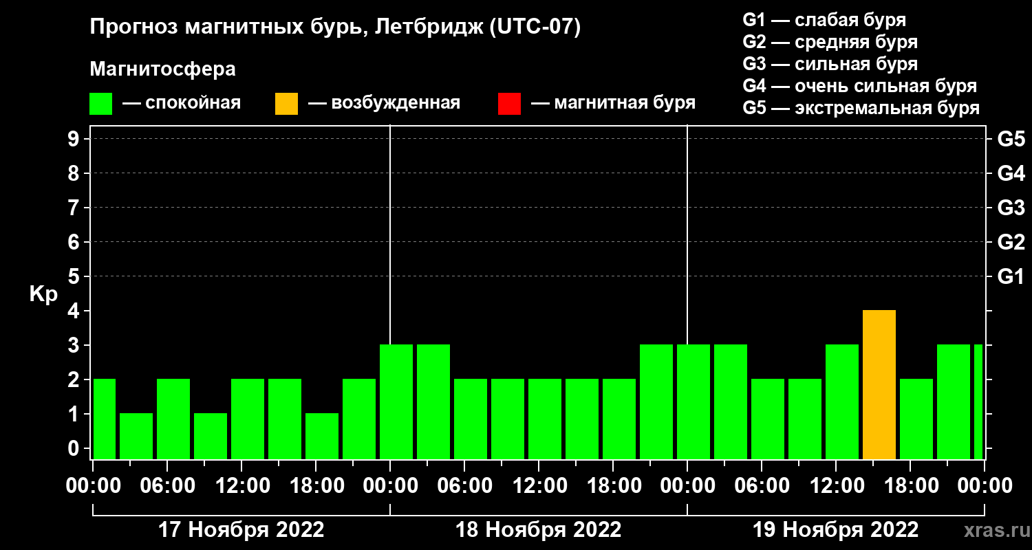 Прогноз магнитных бурь в Летбридже на 17 ноября 2022 года