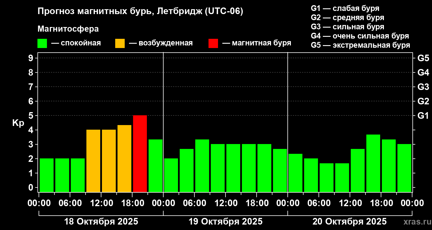 Прогноз магнитных бурь в Летбридже на 18 октября 2025 года