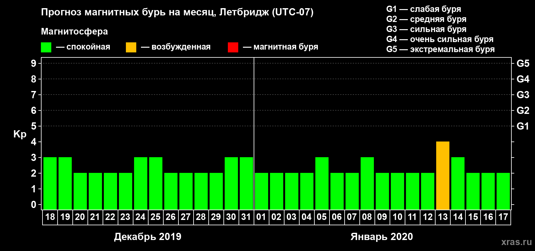 Прогноз магнитных бурь в Летбридже — 18 декабря 2019 года