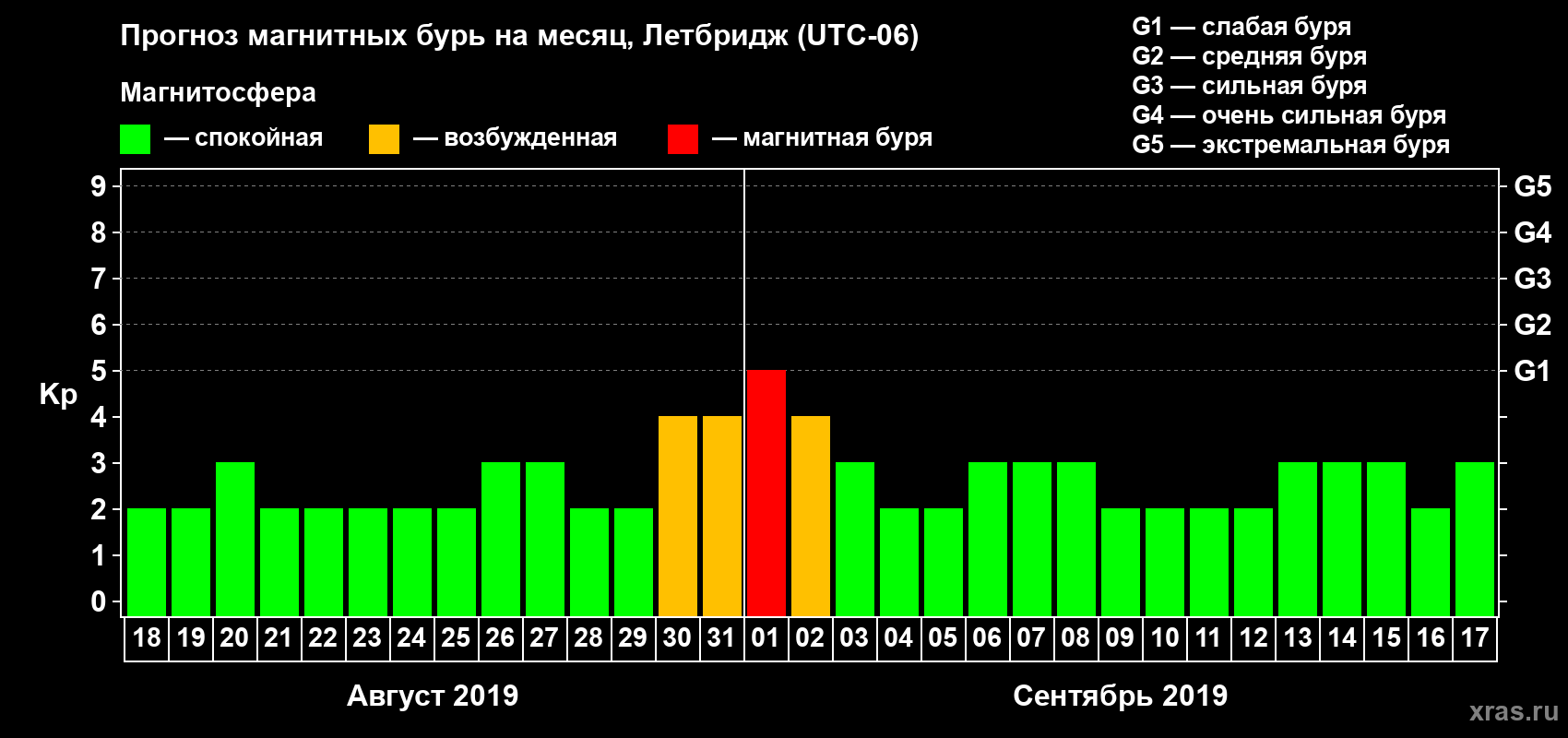 Прогноз магнитных бурь в Летбридже — 18 августа 2019 года