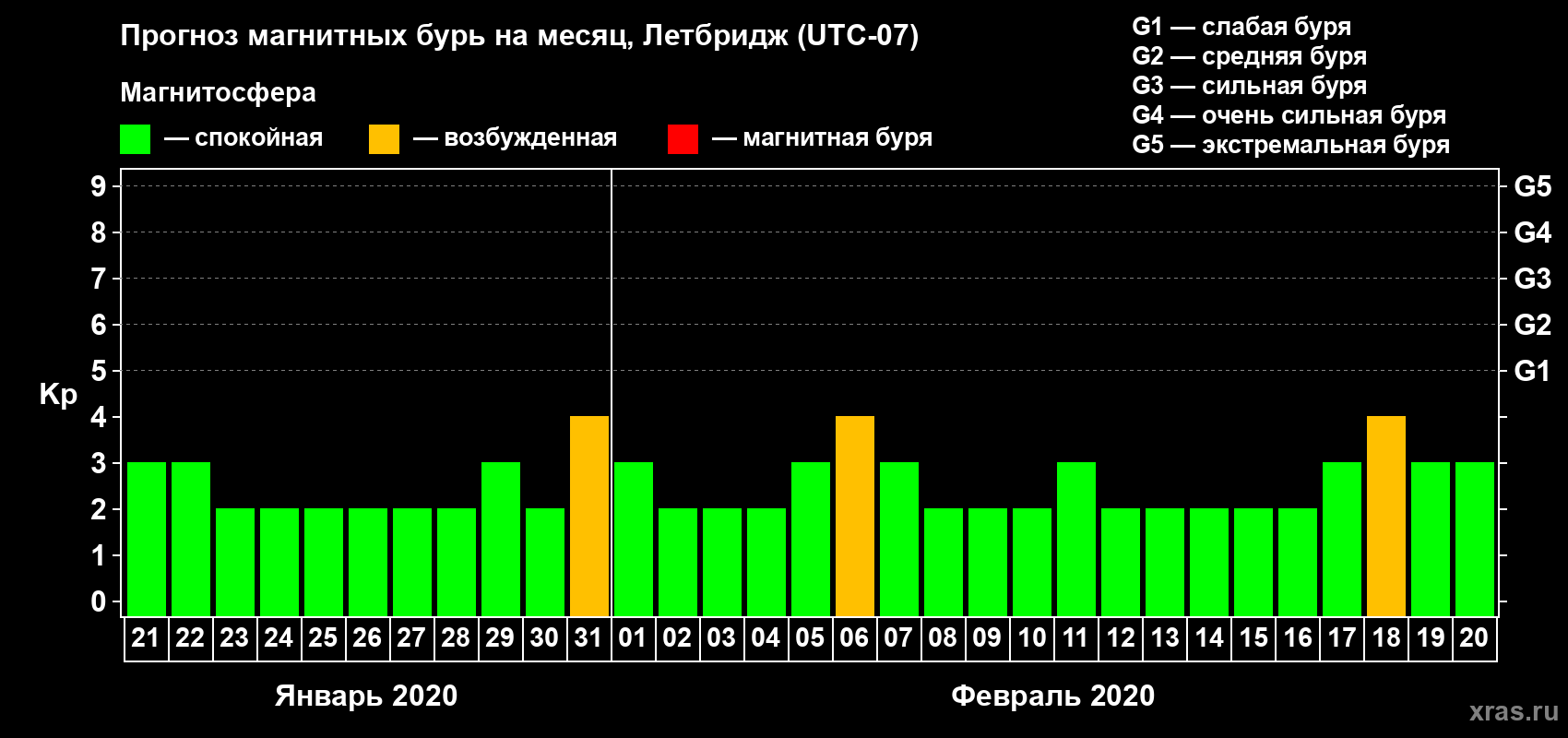 Прогноз магнитных бурь в Летбридже на 21 января 2020 года