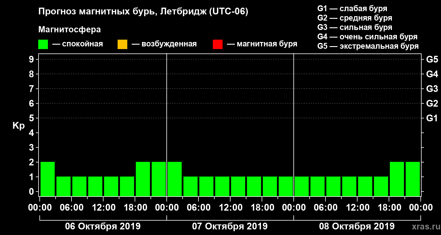 Прогноз магнитных бурь в Летбридже — 6 октября 2019 года