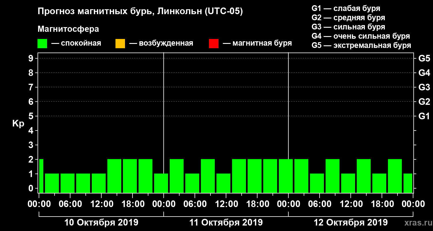 Прогноз магнитных бурь в Линкольне — 10 октября 2019 года