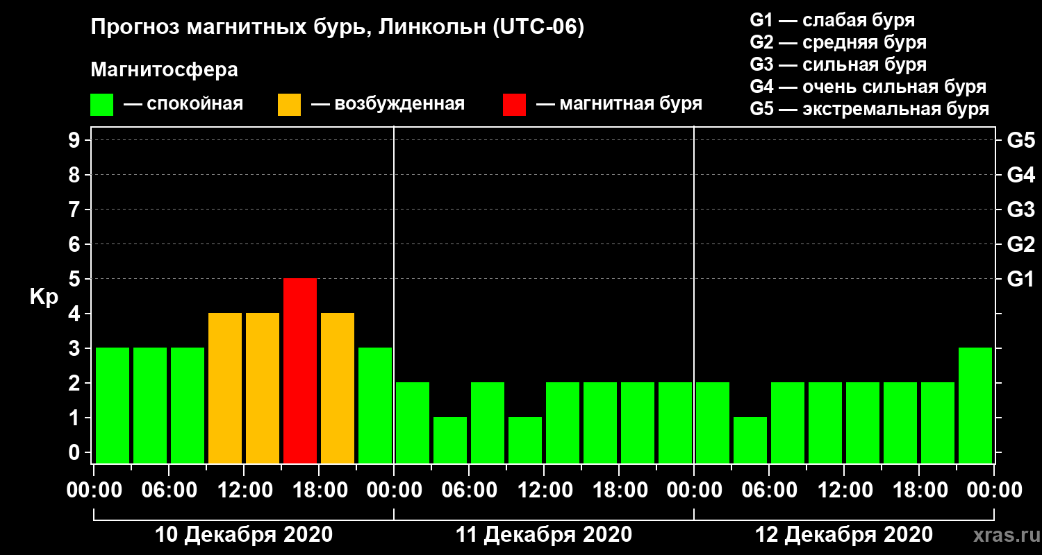 Прогноз магнитных бурь в Линкольне на 10 декабря 2020 года