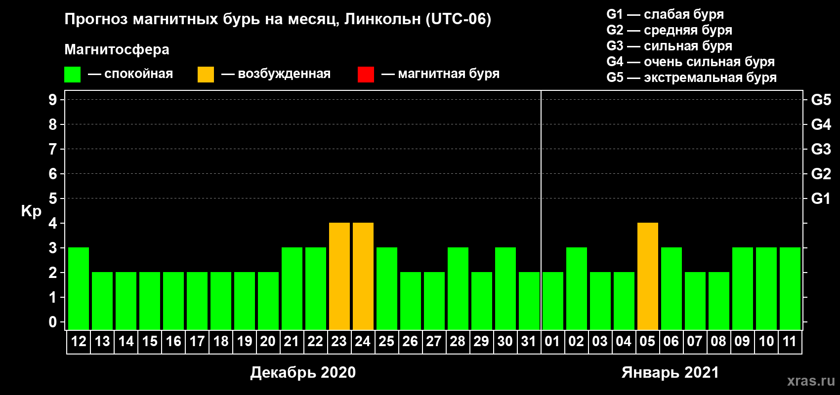 Прогноз магнитных бурь в Линкольне — 12 декабря 2020 года