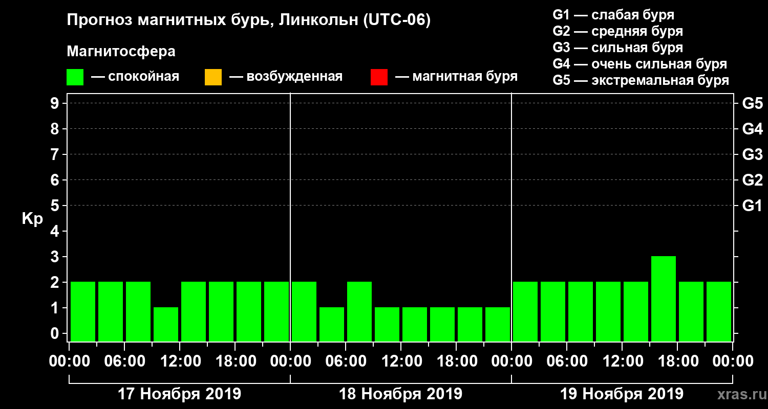 Прогноз магнитных бурь в Линкольне — 17 ноября 2019 года