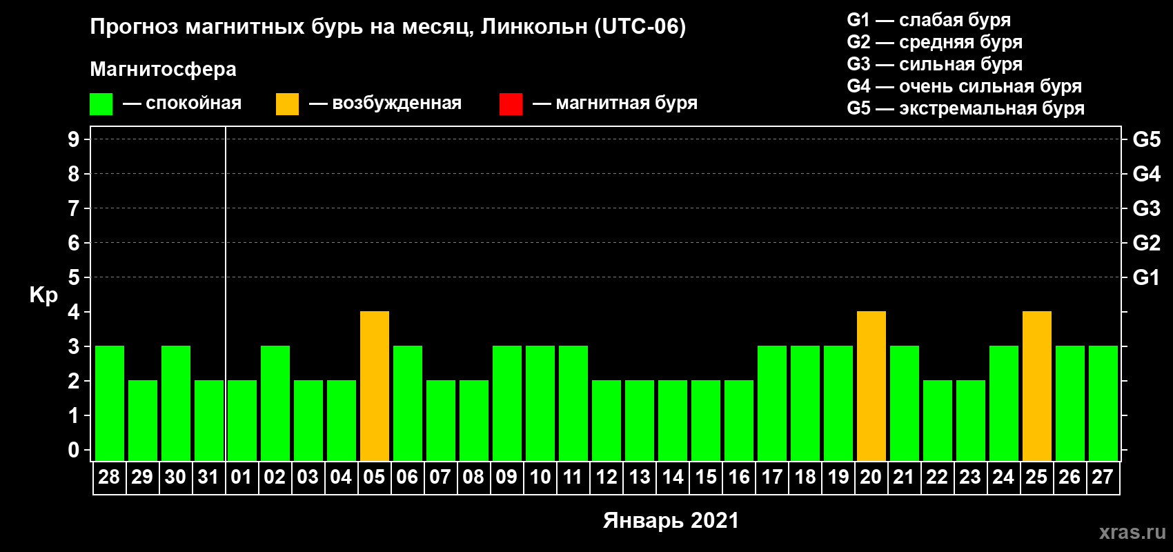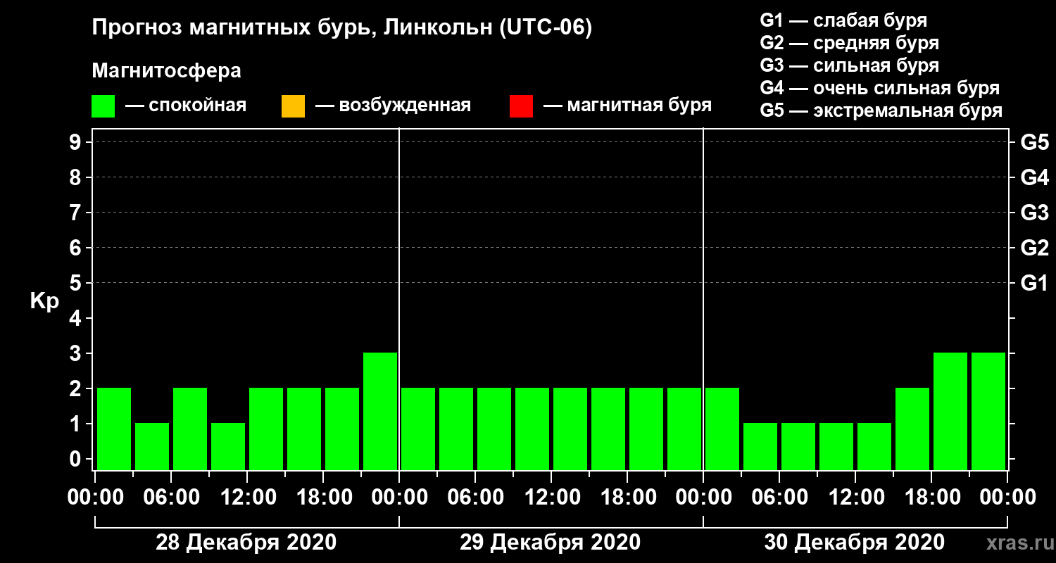 Прогноз магнитных бурь в Линкольне — 28 декабря 2020 года