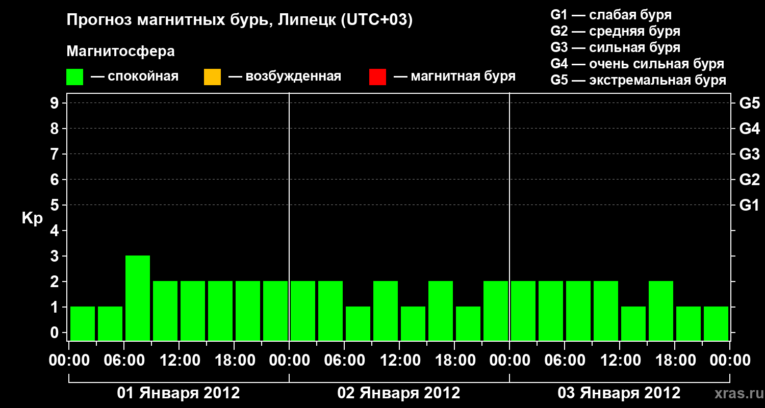 Прогноз магнитных бурь в Липецке — 1 января 2012 года