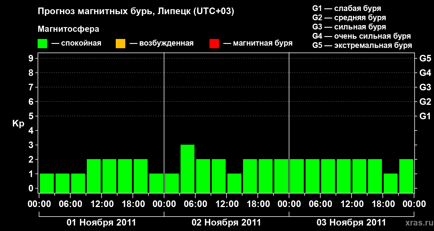 Прогноз магнитных бурь в Липецке — 1 ноября 2011 года