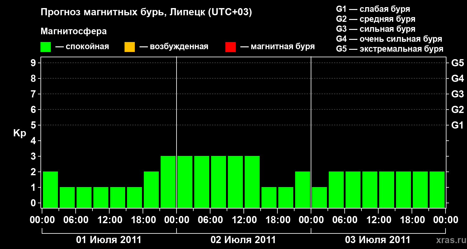 Прогноз магнитных бурь в Липецке — 1 июля 2011 года