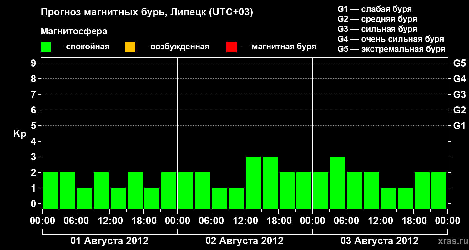 Прогноз магнитных бурь в Липецке на 1 августа 2012 года