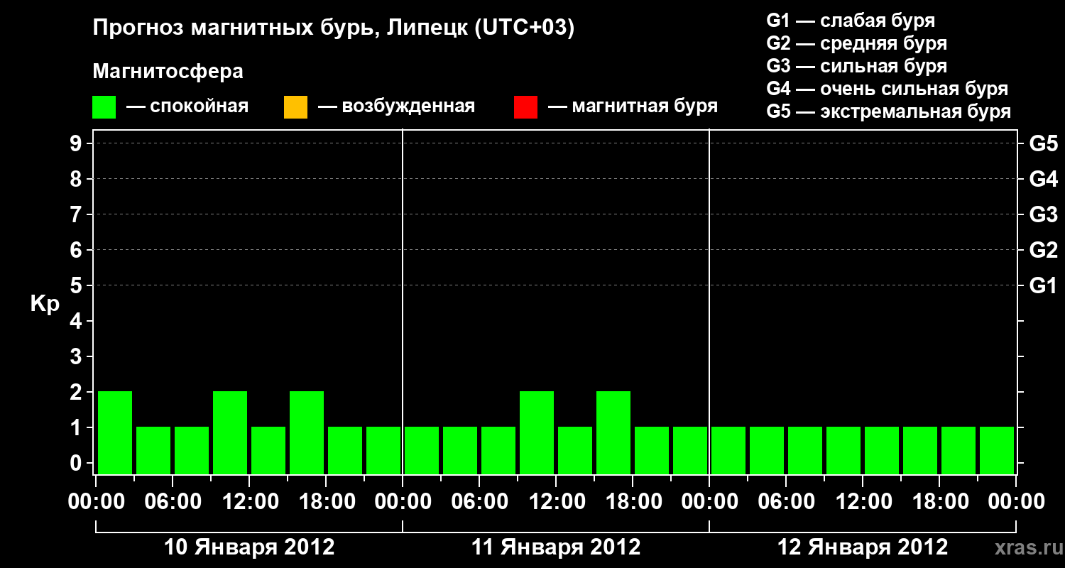Прогноз магнитных бурь в Липецке на 10 января 2012 года