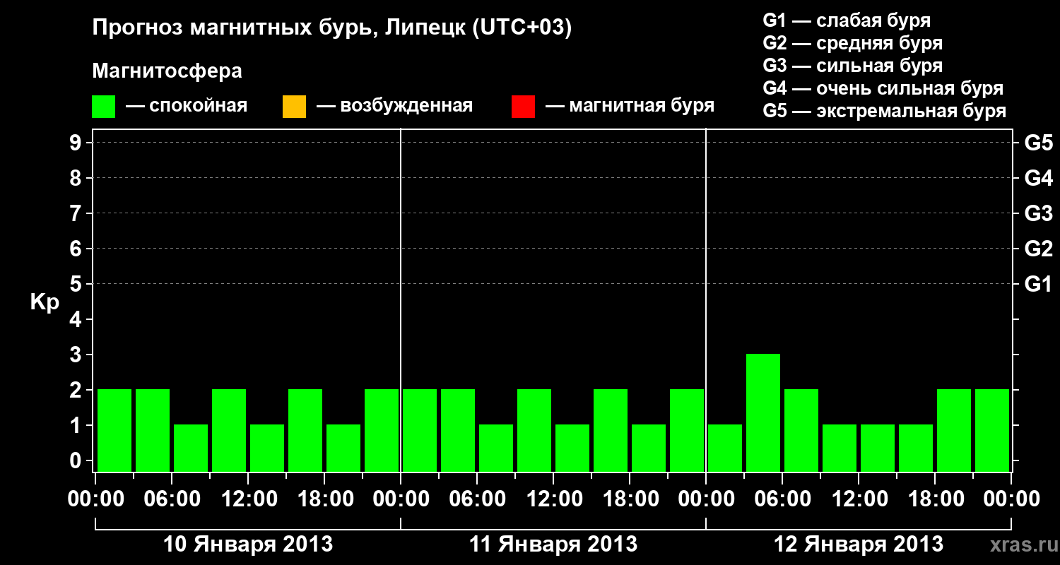 Прогноз магнитных бурь в Липецке — 10 января 2013 года