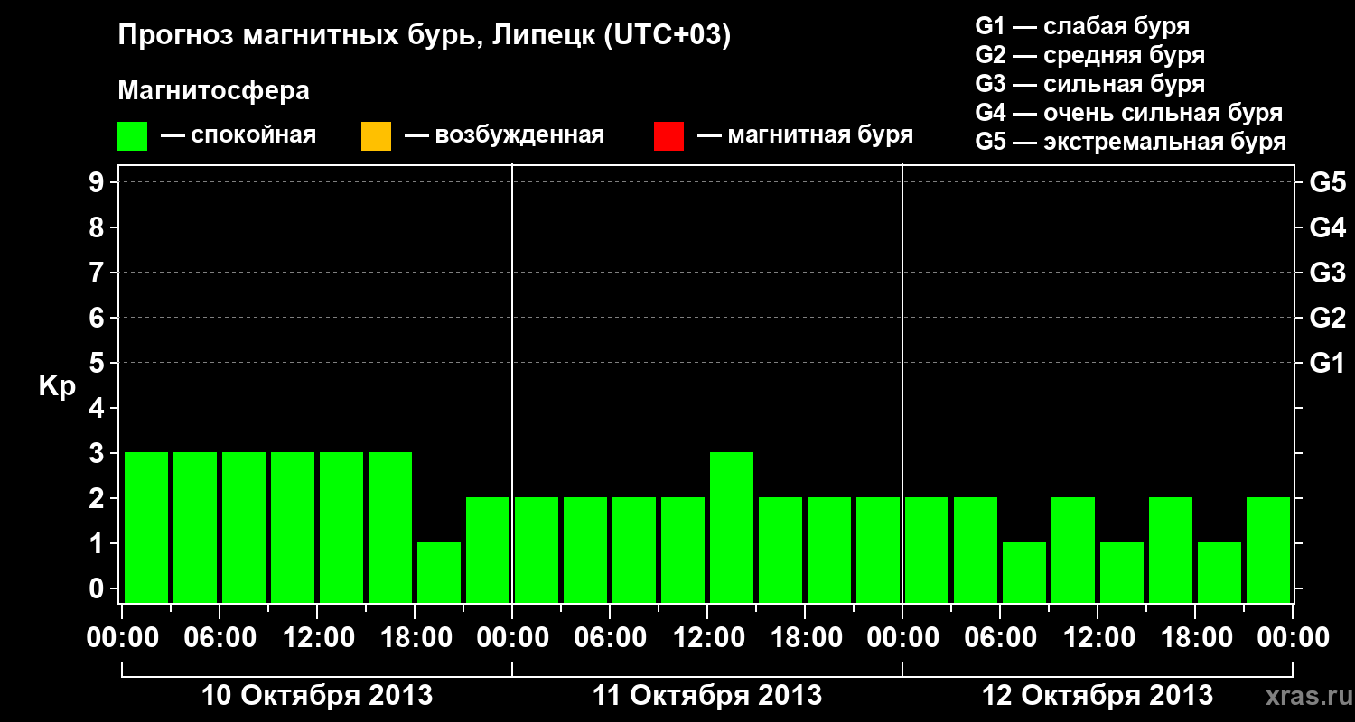 Прогноз магнитных бурь в Липецке на 10 октября 2013 года