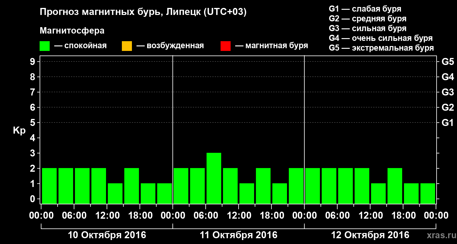 Прогноз магнитных бурь в Липецке — 10 октября 2016 года