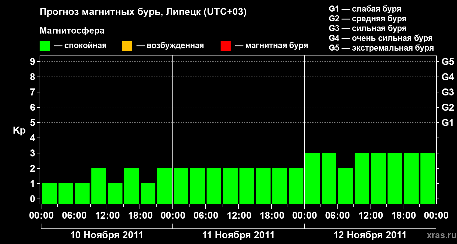 Прогноз магнитных бурь в Липецке — 10 ноября 2011 года