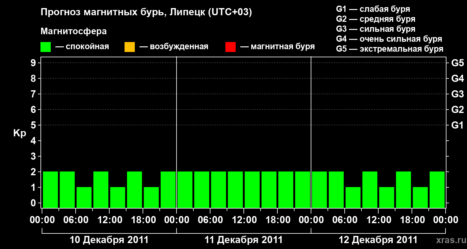 Прогноз магнитных бурь в Липецке — 10 декабря 2011 года