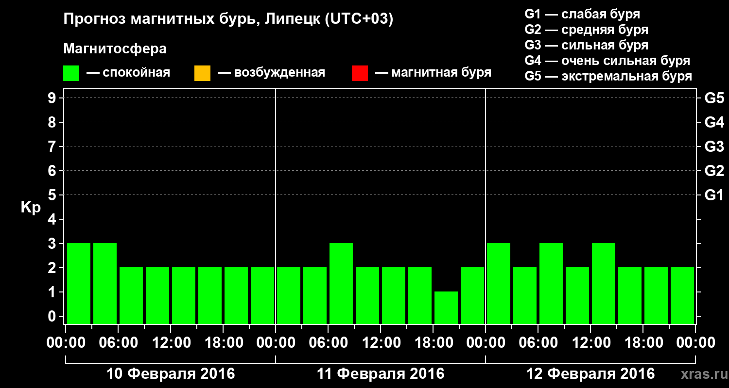 Прогноз магнитных бурь в Липецке на 10 февраля 2016 года