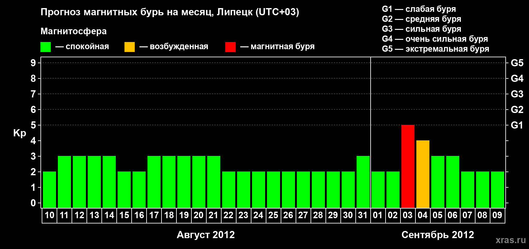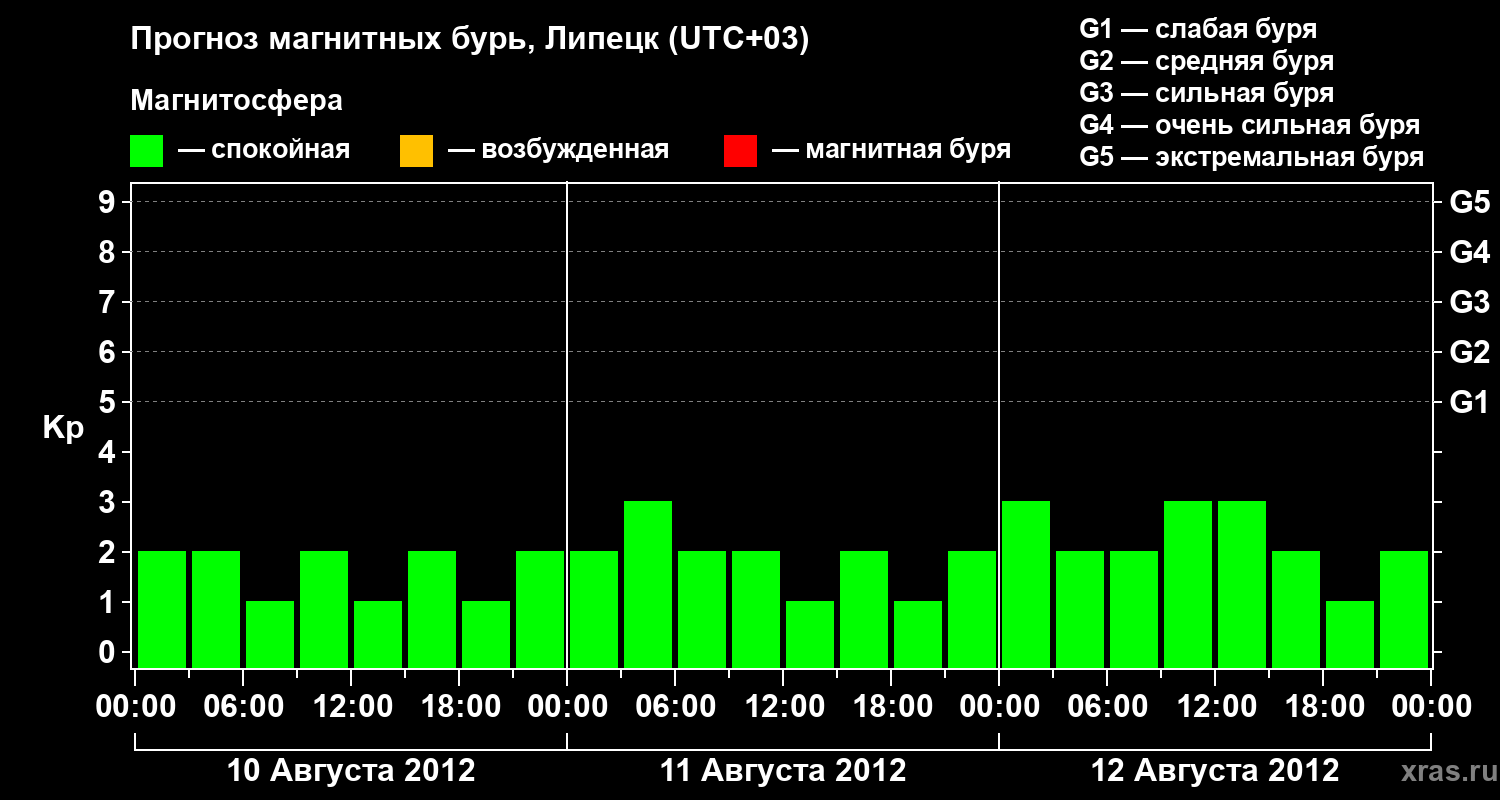 Прогноз магнитных бурь в Липецке на 10 августа 2012 года