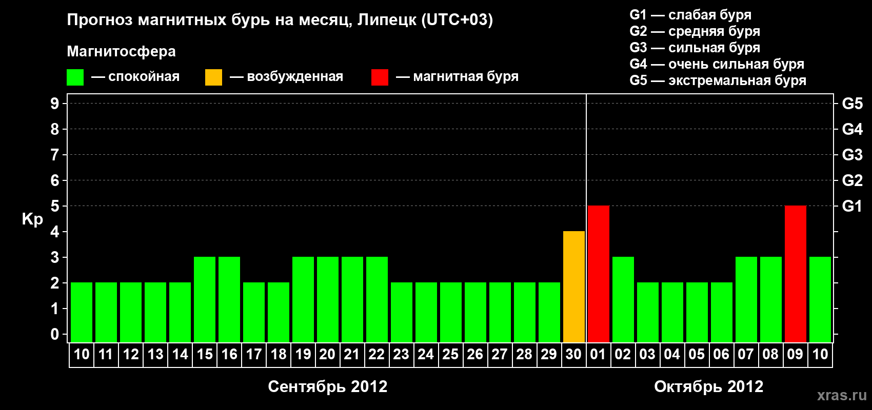 Прогноз магнитных бурь в Липецке — 10 сентября 2012 года