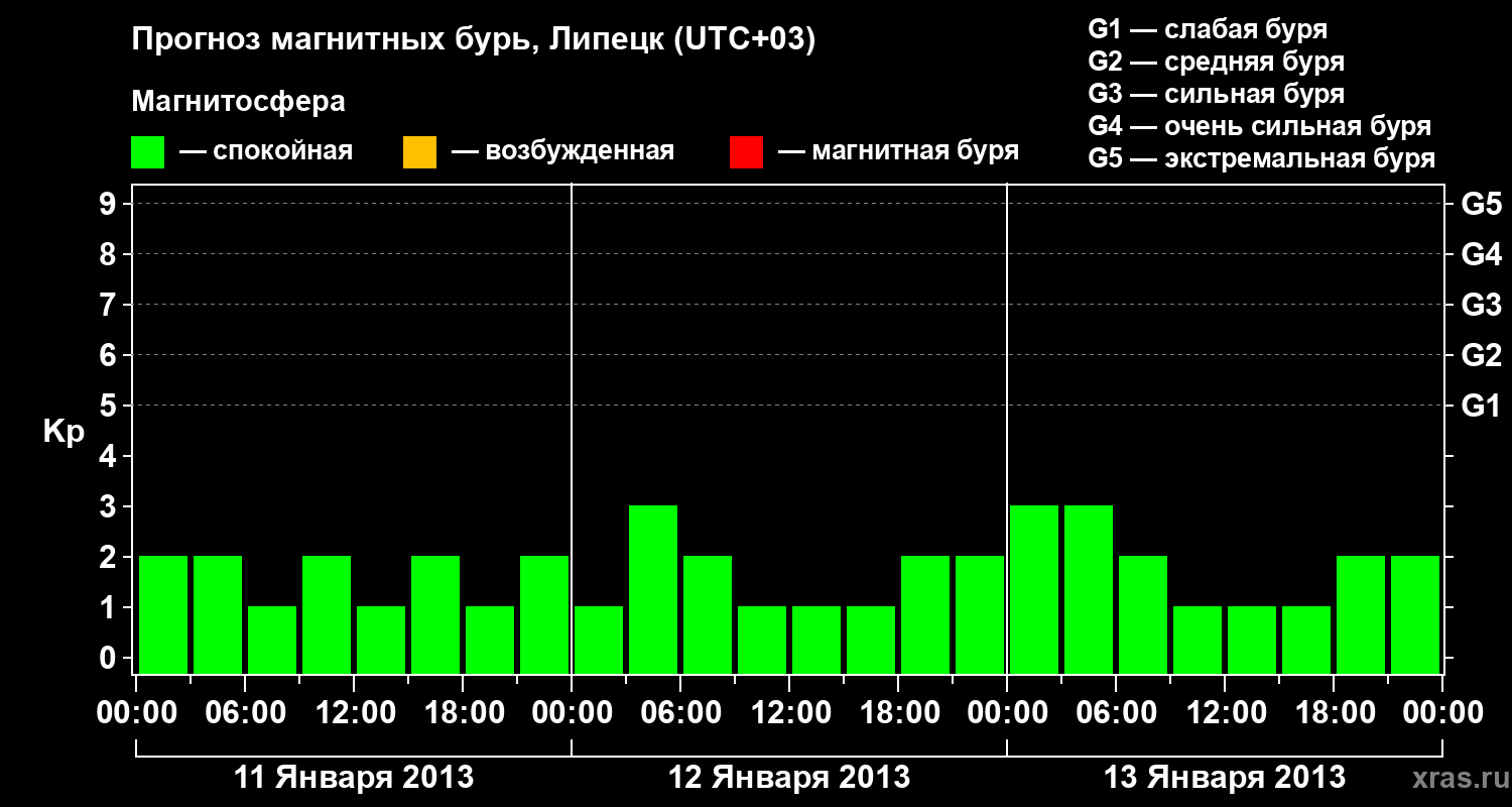 Прогноз магнитных бурь в Липецке — 11 января 2013 года